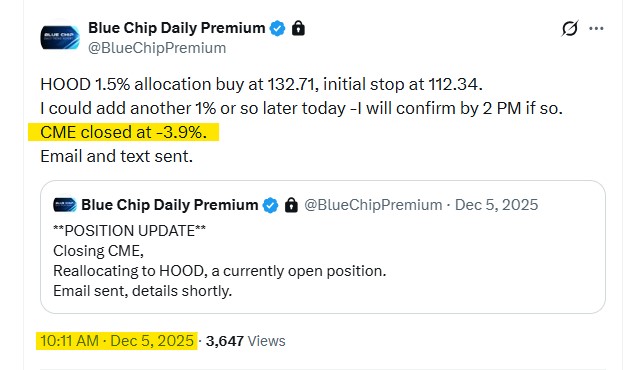 - Our subscribers are alerted to position updates by email, text and X post.