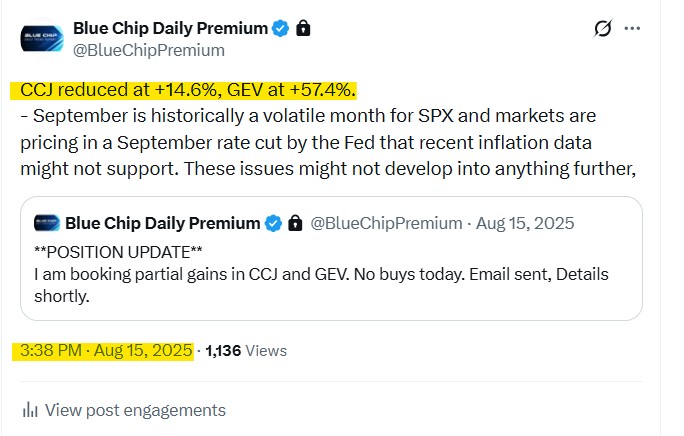 Our subscribers are alerted to all position updates by email, text and X post.