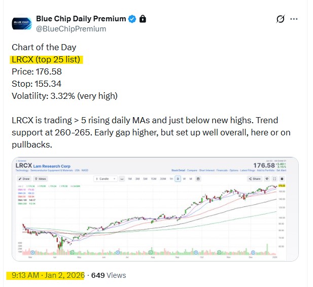 - On 1/2/26, we posted this as our Chart of the Day best idea for subscribers, at 176.58.