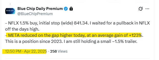 Our subscribers are alerted to all position updates by email, text and X post.