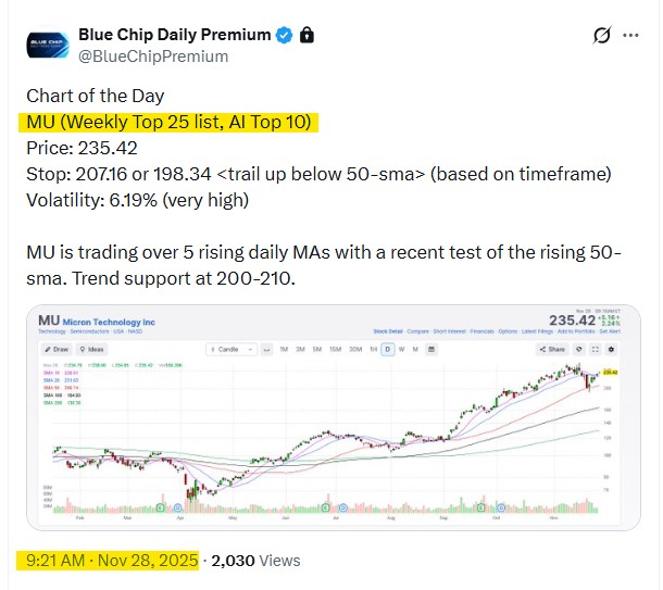 - On 11/28/25, we posted this as our Chart of the Day best idea for subscribers, at 235.42.