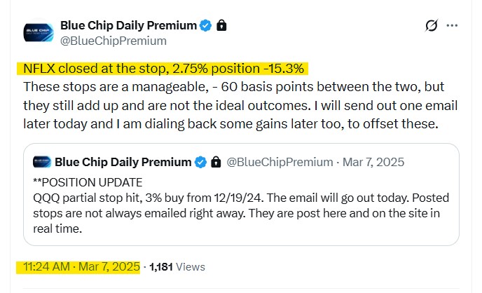 Netflix (NFLX) was closed at the posted stop loss, -15.3%.