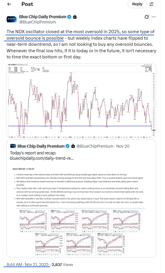 NDX hit the most oversold reading of 2025, last Thursday. We informed our subscribers pre-market on Friday, and told them to expect an oversold bounce/reversal, which we have seen so far.