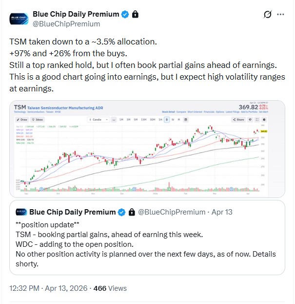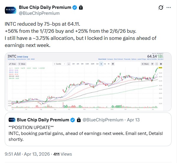 - On 4/13/26 we booked partial gains, in two open technology sector positions.